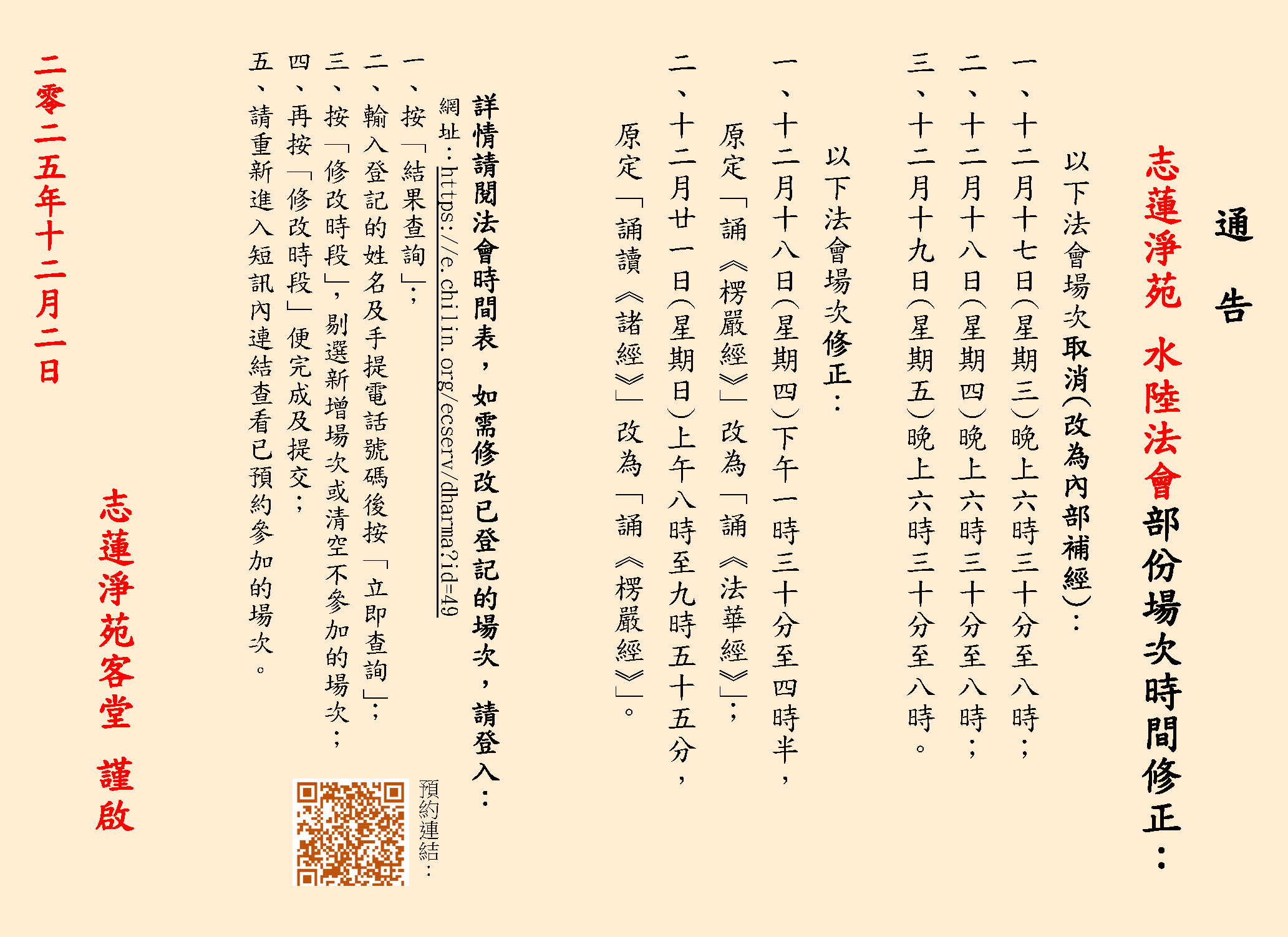 水陸法會部份場次時間修正